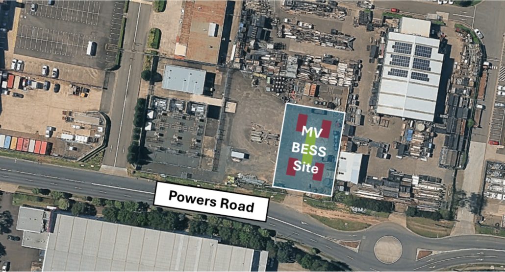 Ausconnex is proposing a small scale, medium voltage (MV) BESS which will be located on the site of the existing transmission substation at 22 Powers Rd, Seven Hills NSW. See site map image below.